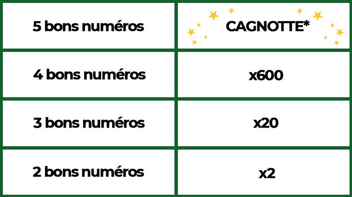 2️⃣ bons numéros : 2 x la miseVous avez une question ? Notre service client se fera un plaisir de répondre à toutes vos questions au 241 061 004 957 📞