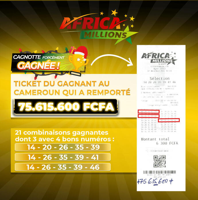 Les derniers gagnants ont remporté 75, 77, 80 et 100 Millions FCFA !